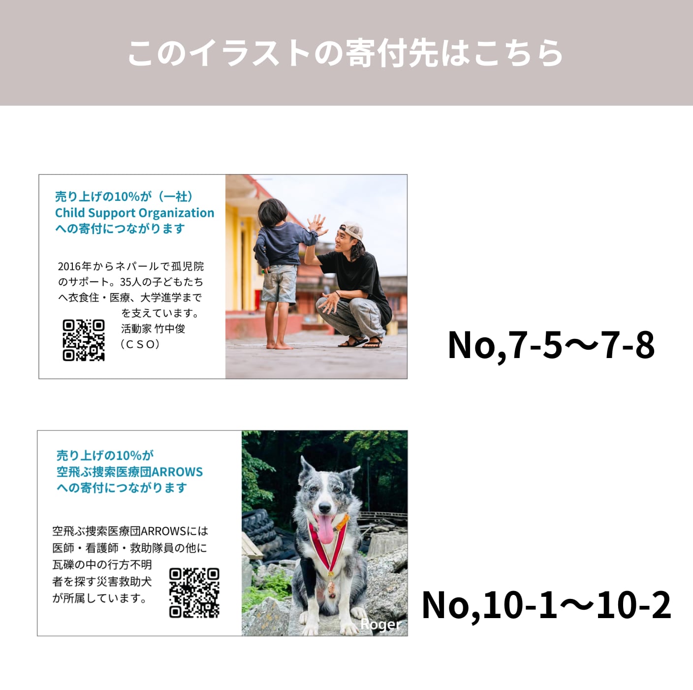 売り上げの1割が、イラスト作者様にお選びいただいた団体様への寄付につながります。