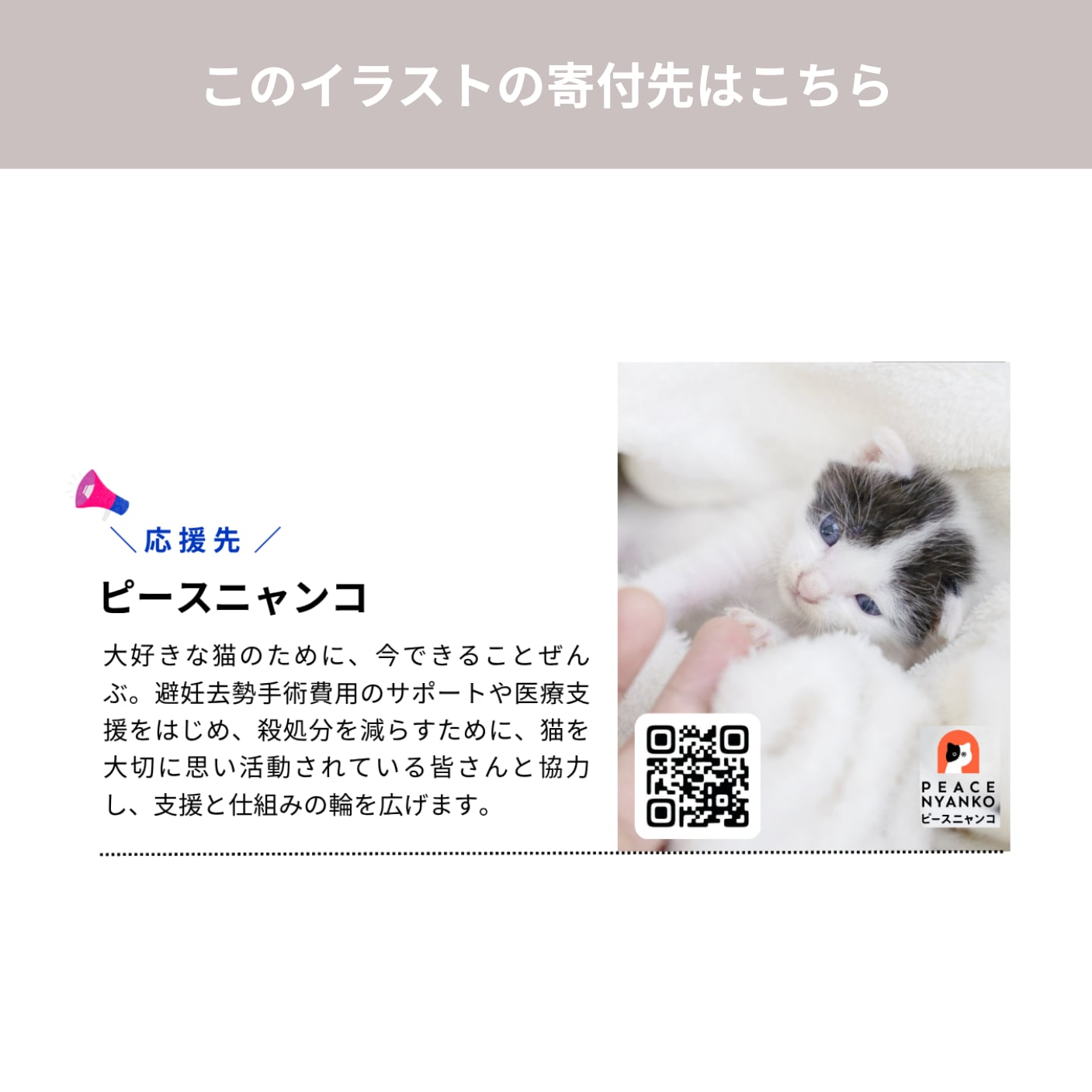 売り上げの1割が、イラスト作者様にお選びいただいた団体様への寄付につながります。