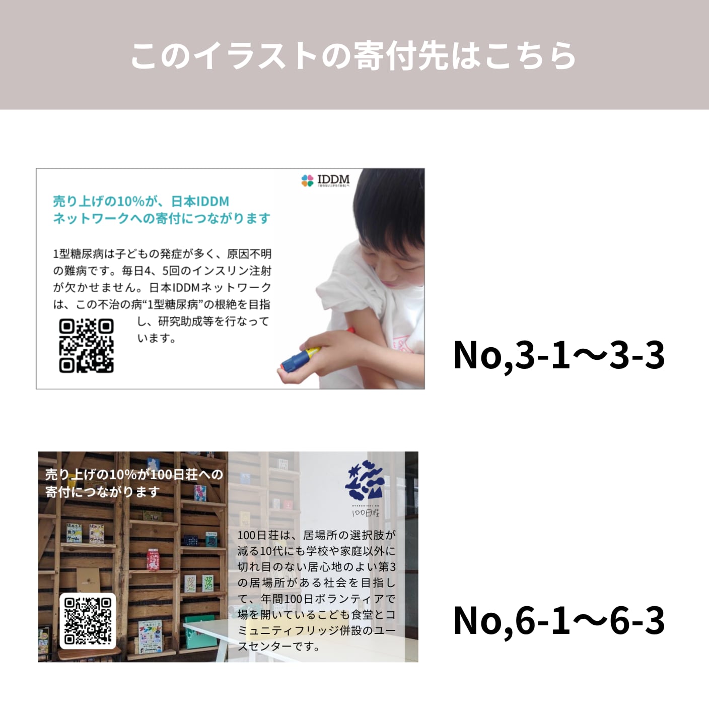 売り上げの1割が、イラスト作者様にお選びいただいた団体様への寄付につながります。